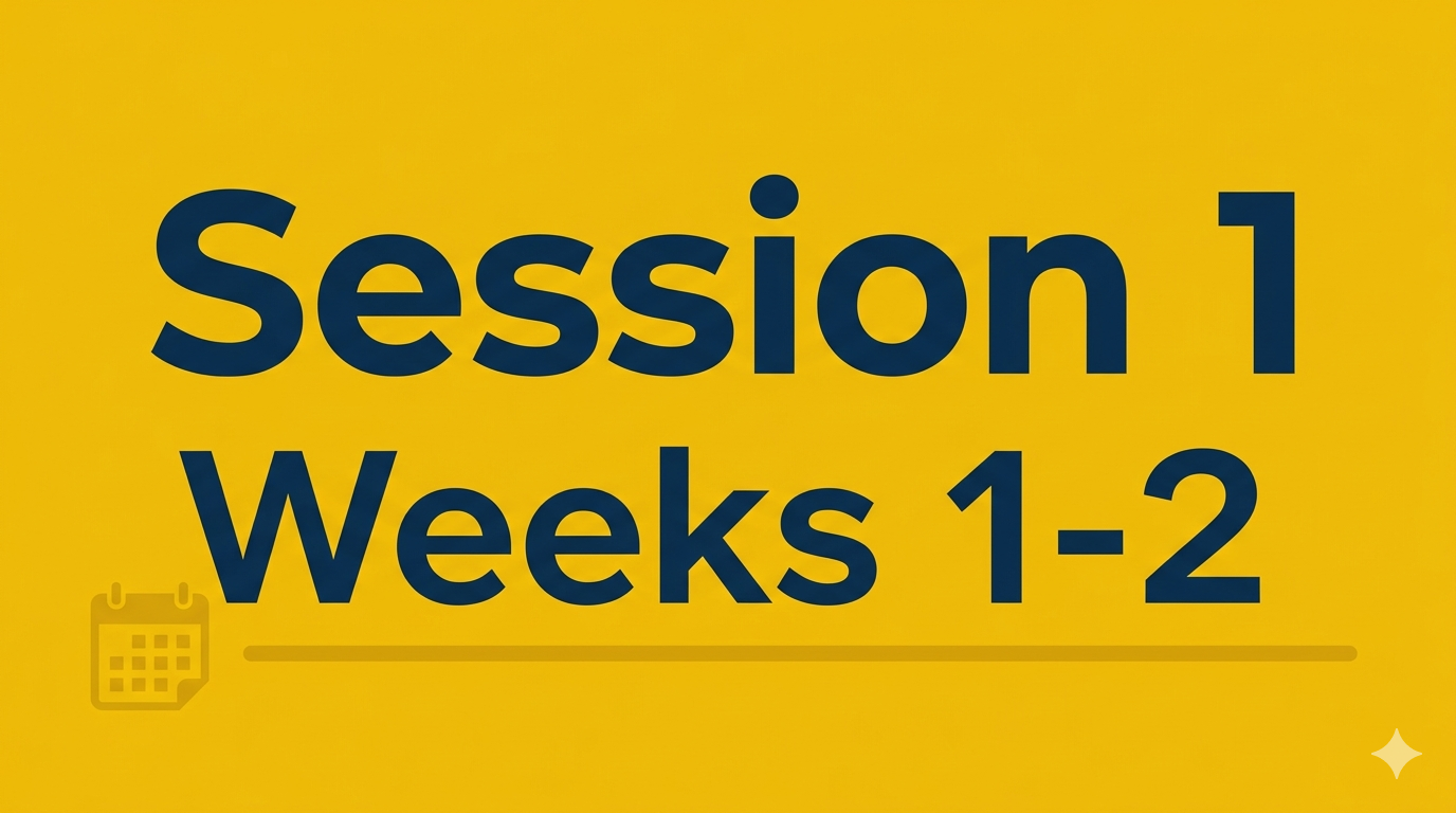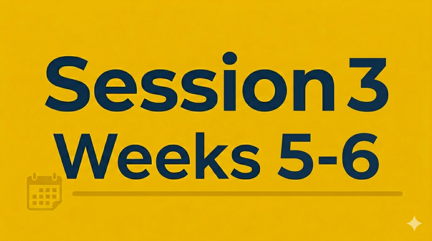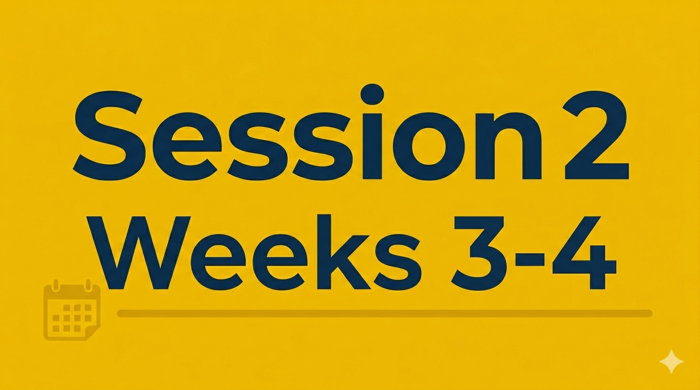 One session every two weeks over six weeks. Each session has a defined objective, pre-session homework, and a structured agenda.